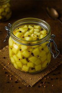 Reifezeit: Mindestens zwei Wochen kühl und dunkel lagern, damit die Gurken das süß-würzige Honig-Ingwer-Aroma vollständig annehmen. Geöffnete Gläser im Kühlschrank aufbewahren.